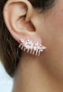 These earrings cover your ear from front to back and have 8 semi-hoops with 15 miniature zircon stones each and accompanied by a bigger cluster of 14 bigger zircon stones.