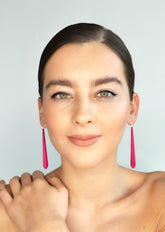 These exclusive earrings are a statement fusion of modern contemporary minimalism and vintage feel. Long drop earrings are particularly suitable for those with an oval, round, rectangular and heart face shape.