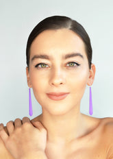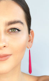 Nylon is a very light and resilient material making this long earrings very lightweight and comfortable for anyone to wear. The hooks are handmade in sterling silver. The radiant colors are achieved by hand dipping the pieces in hypoallergenic pigments, which are then sealed and waterproofed, to a lovely smooth and matte finish.