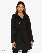 Crafted from smooth, supple faux wool, this cover-up is a luxurious take on a cool-girl essential. With a detachable hood, double breasted fastening as well as a belt, you will surely look the part however you wish to wear this piece.