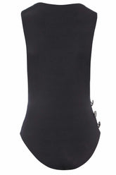 Dare to bare in this chic one-piece, cut high on the leg with a low arm. Our Chloe dropped armholes bodysuit is like a second skin which is flattering as much as it is versatile. Boasting a crew neck and metallic buttons for a bit of extra sparkle. Wear Chloe on its own for a beachy holiday look, or pair it with your favourite tailored trousers for a sophisticated all-year-round look.