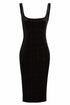 SIMA Gold polka dot dress has a fitted knee-length hourglass silhouette shape with a scooping round neckline and back. Ethically Made in Britain using shimmery black velvet and golden polka dot details. This Midi polka dot dress is fully lined and features a black and gold glitter subtle polka dot design.