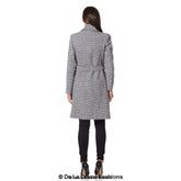 De La Creme - Womens Prince Of Wales Check Large Lapel Duster Coat