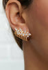 These earrings cover your ear from front to back and have 8 semi-hoops with 15 miniature zircon stones each and accompanied by a bigger cluster of 14 bigger zircon stones.